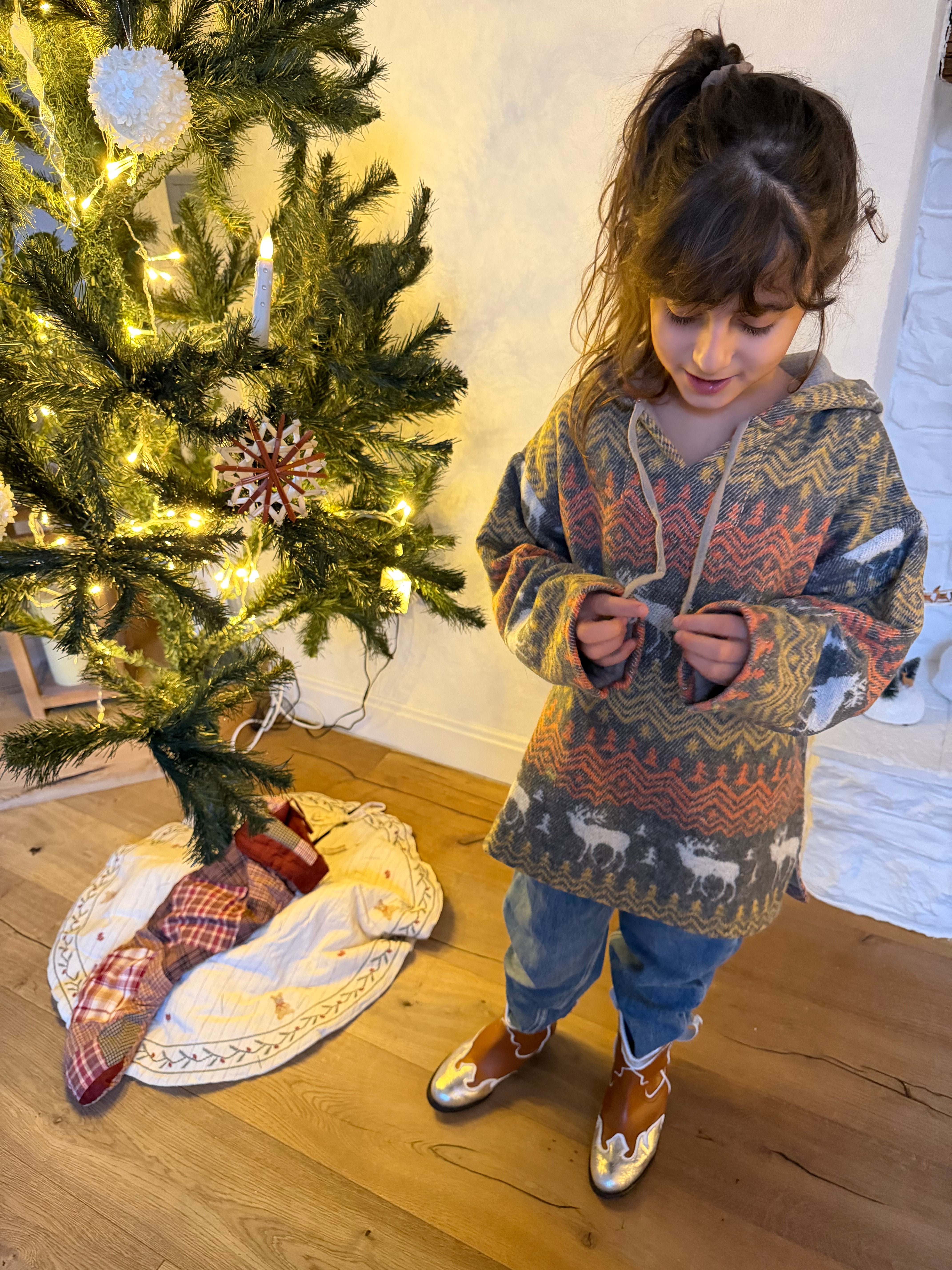 Designed with a hood and long sleeves, the Cosy Hoodie is crafted from 100% cotton muslin on the inside and features an adorable deer design, making it a perfect choice for the holiday season.
