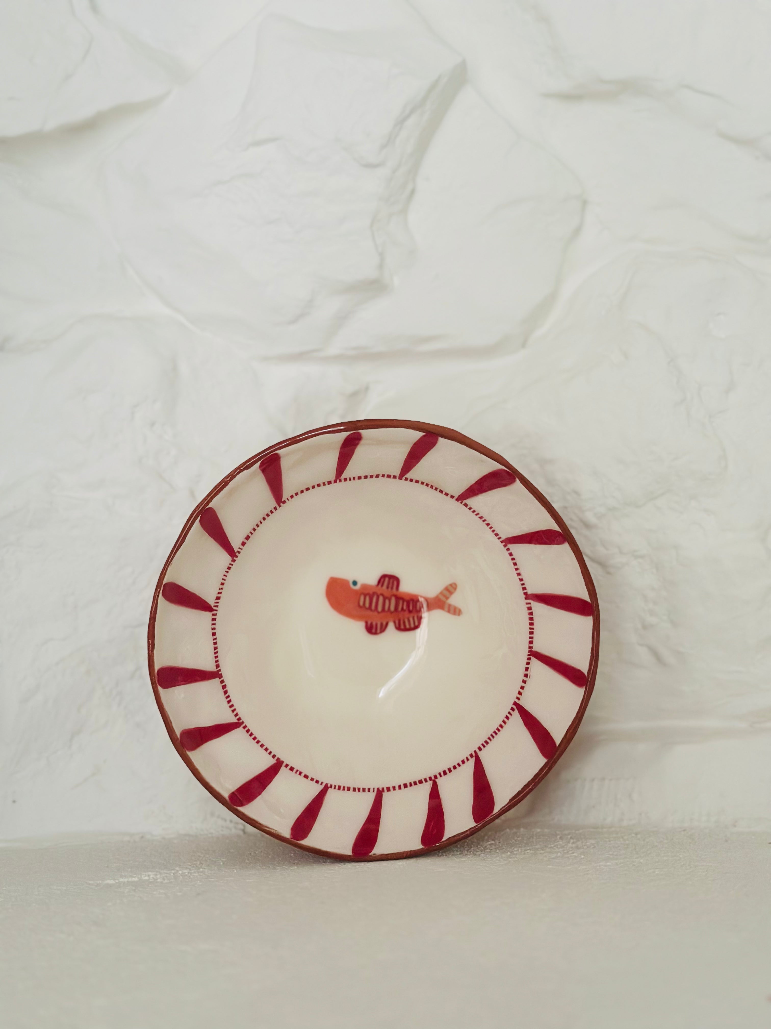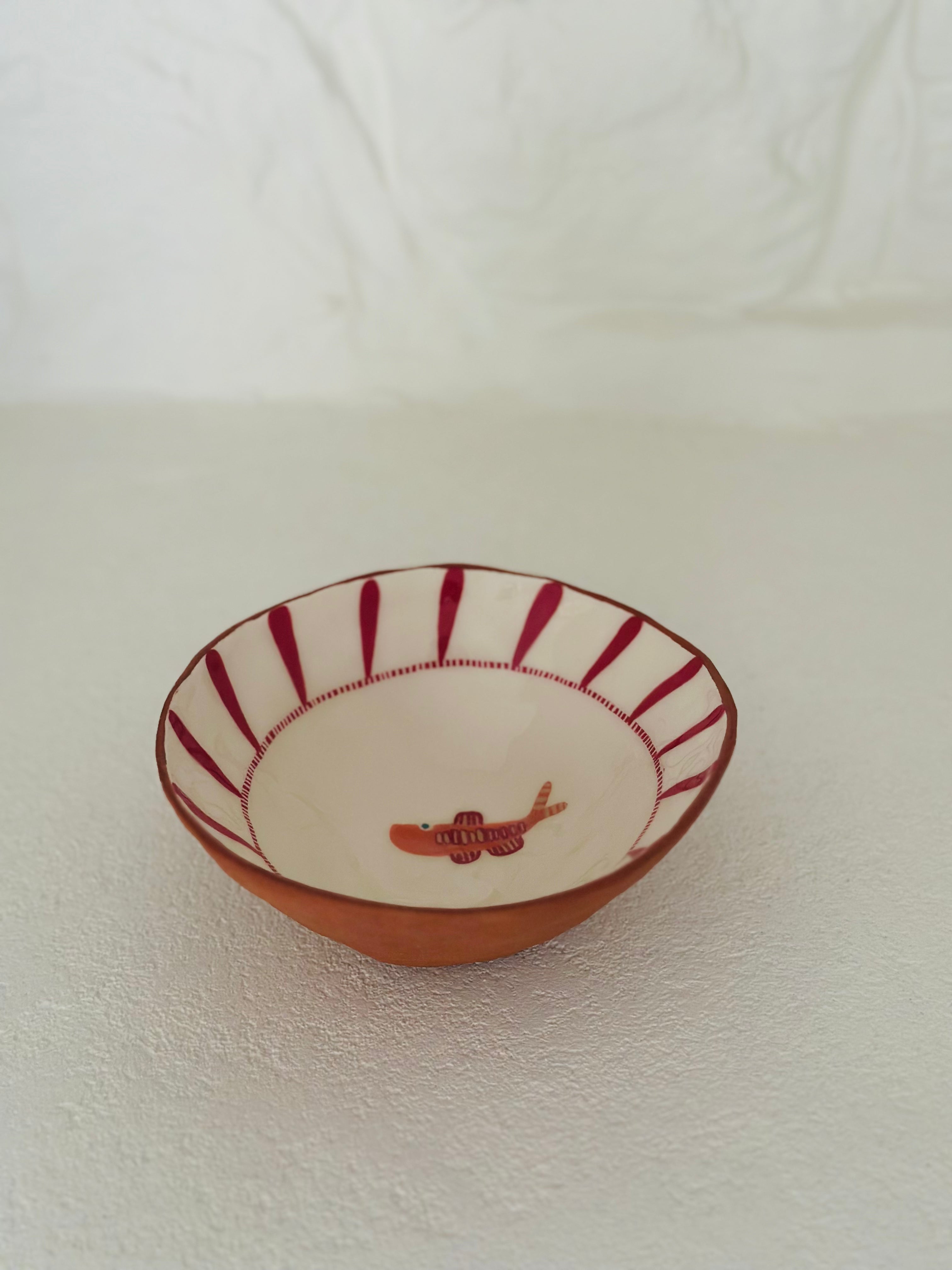 This handmade ceramic bowl features Kisu’s unique fish pattern, drawn by hand adds a touch of charm to any table setting.