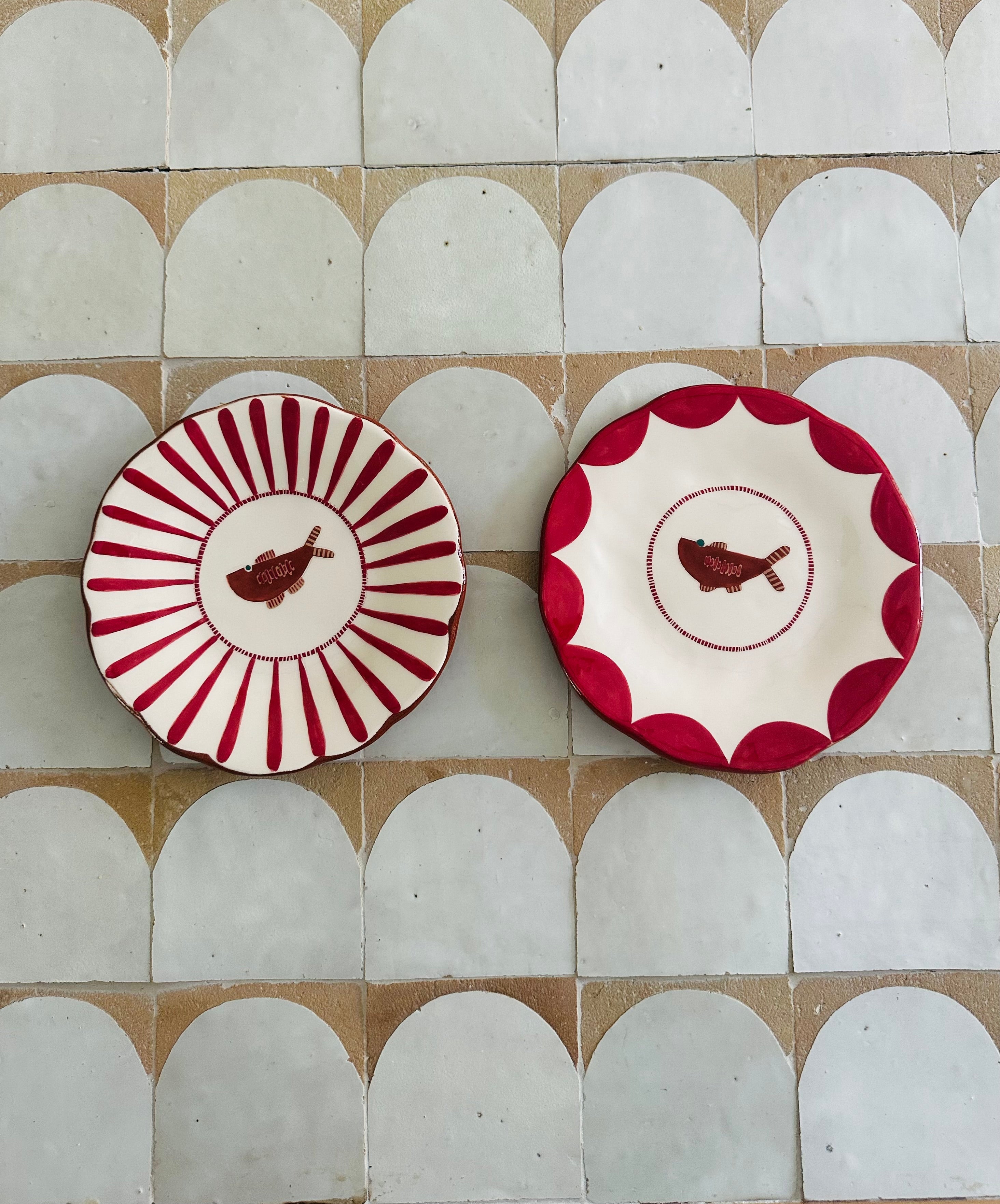 Crafted by hand, each plate features a whimsical design that brings playful charm to your moments for sweet and bites.