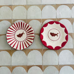 Crafted by hand, each plate features a whimsical design that brings playful charm to your moments for sweet and bites.