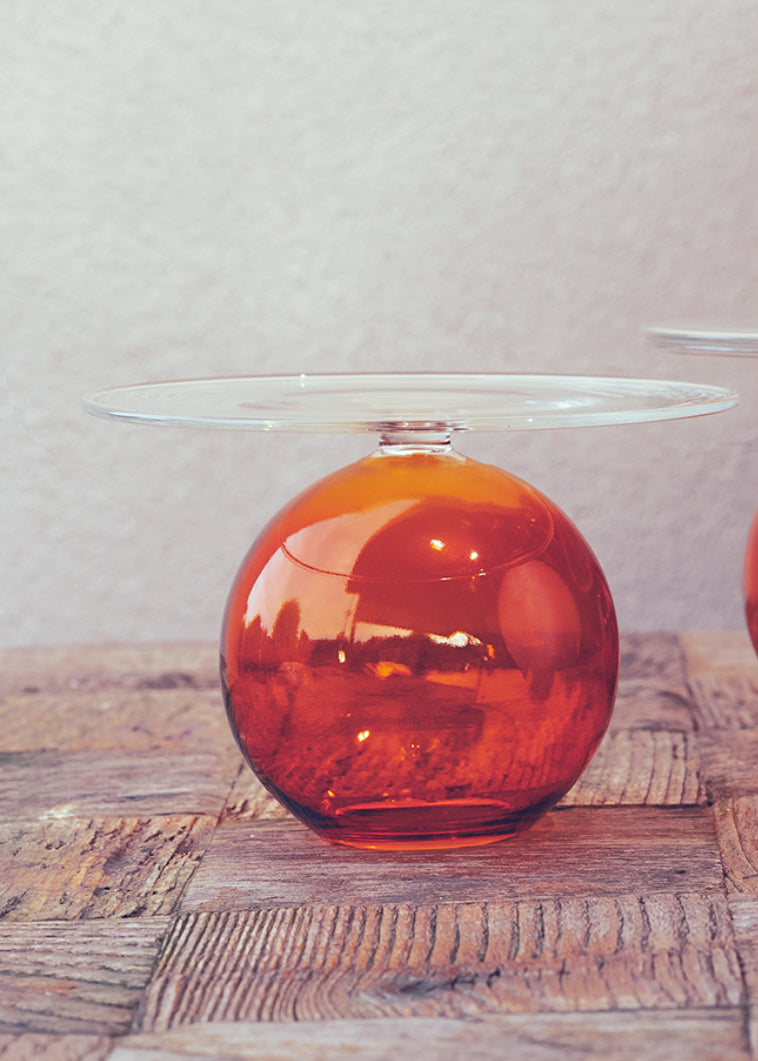 Designed to resemble a pastel palette, this versatile plate can be used as a base for serving cakes, pastries, or any sweet treat. Its delicate, hand-blown design adds a unique charm to every presentation.