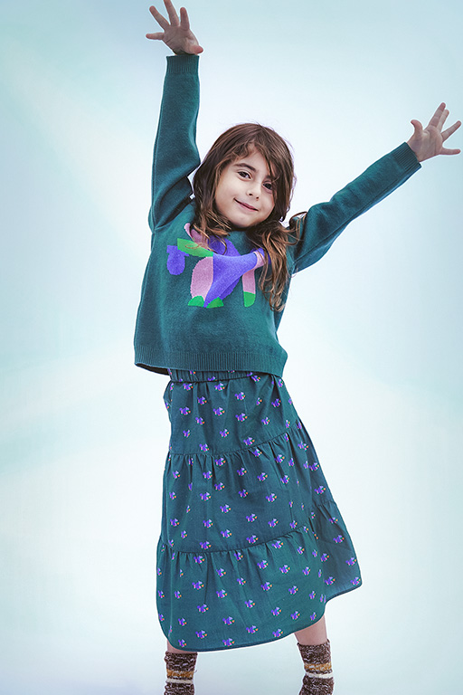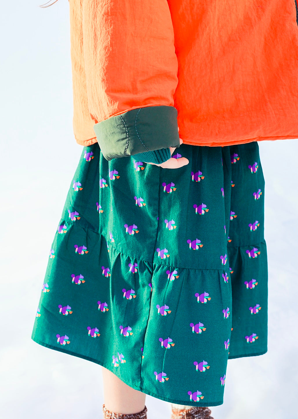 Kisu's Green Maxi Skirt for girls! This delightful skirt features a serene green hue adorned with adorable tiny squirrels, adding a whimsical touch to your little one's wardrobe.