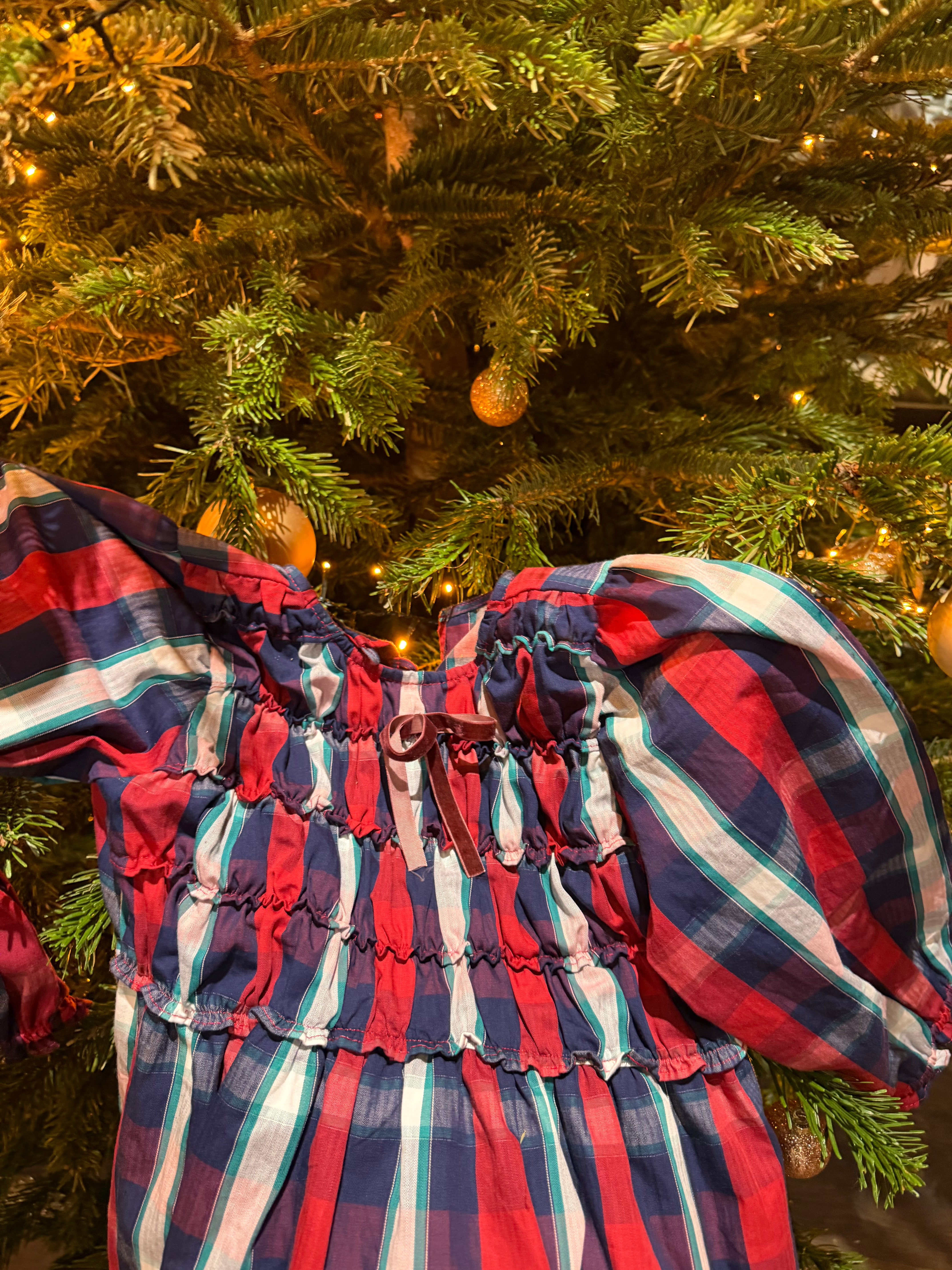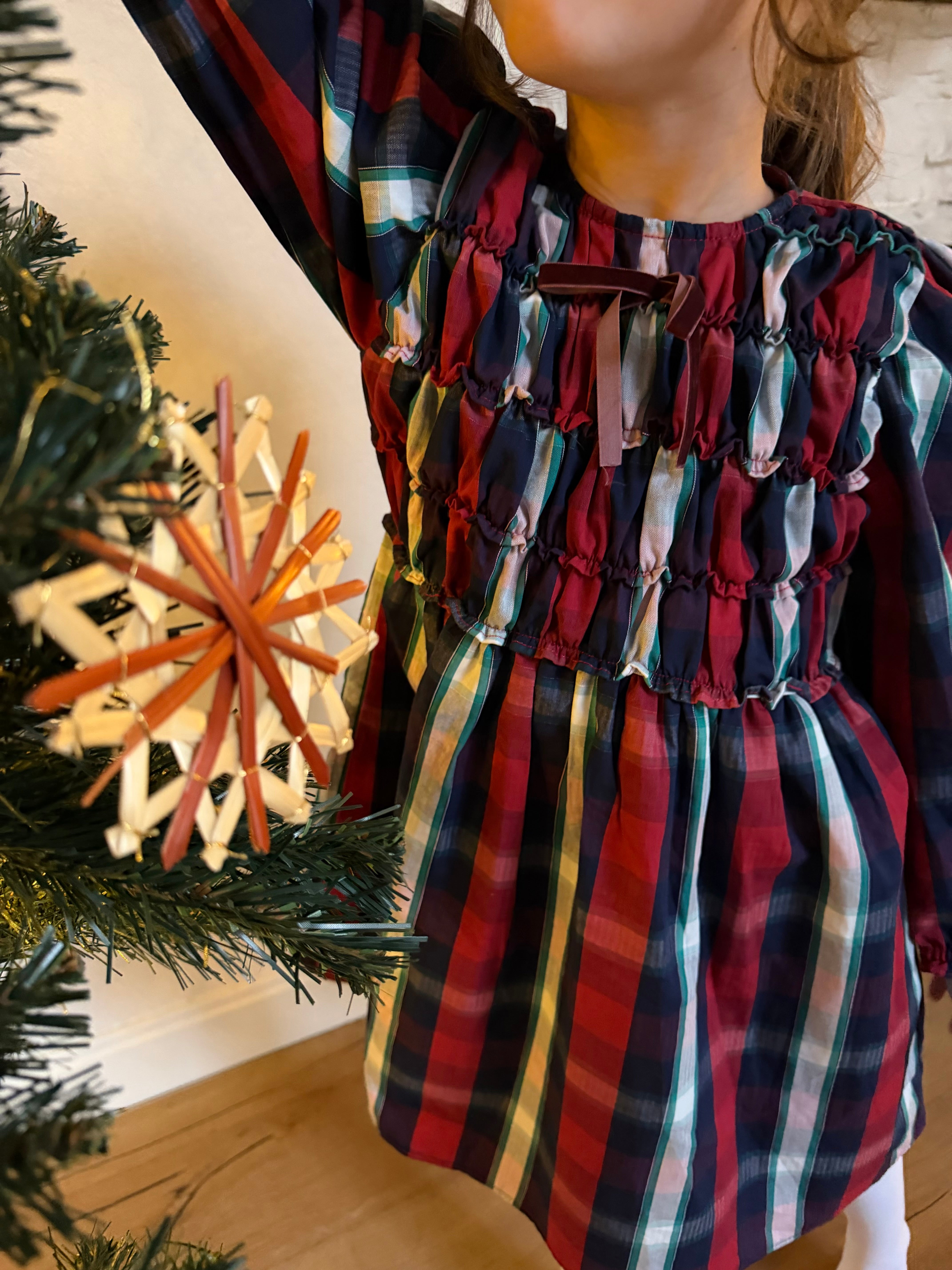 Gingham dress with velvet ribbon